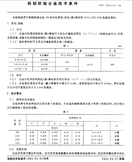 • GB_T_15004-1994_鐵鋁軟磁合金技術(shù)條件